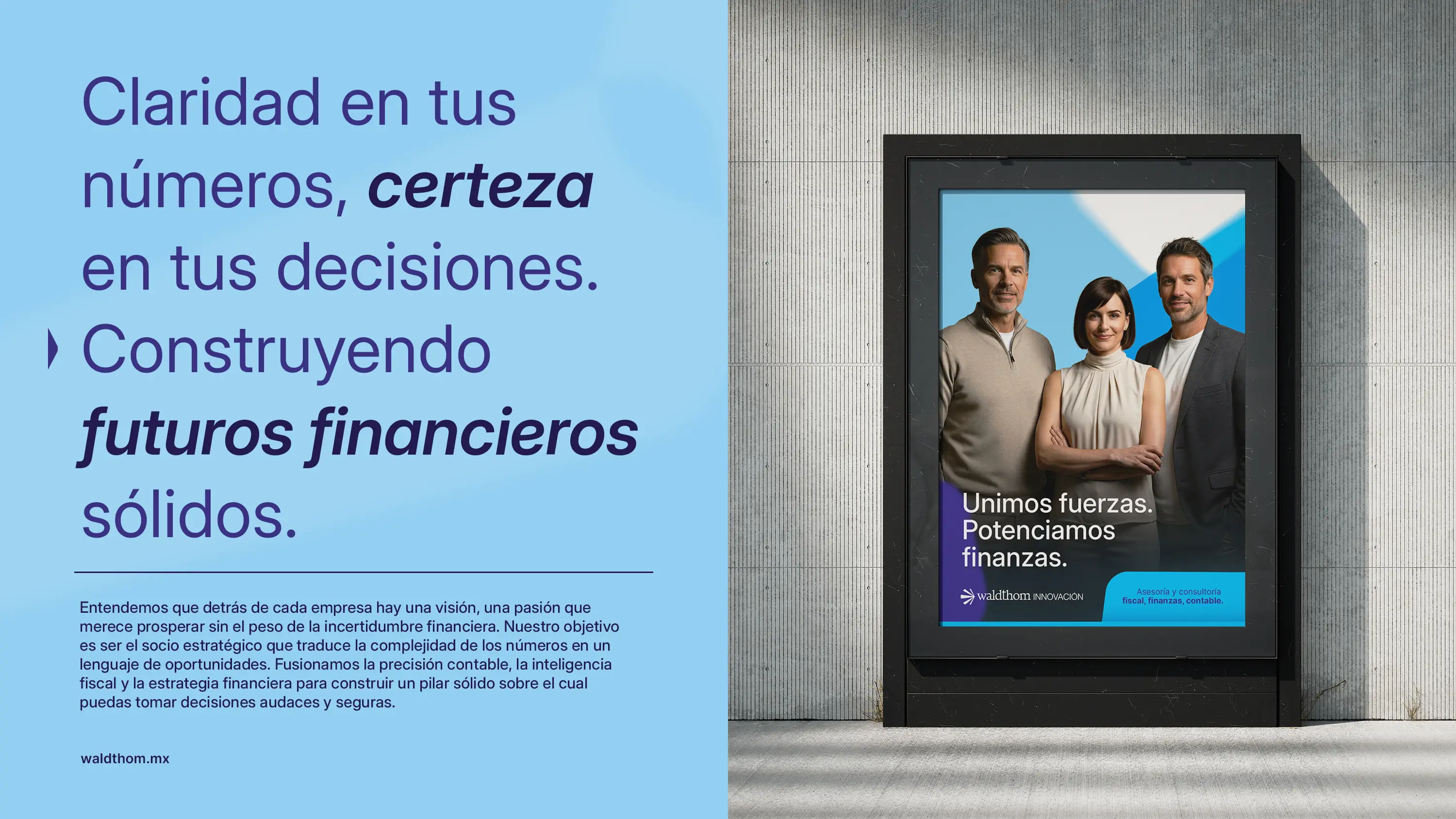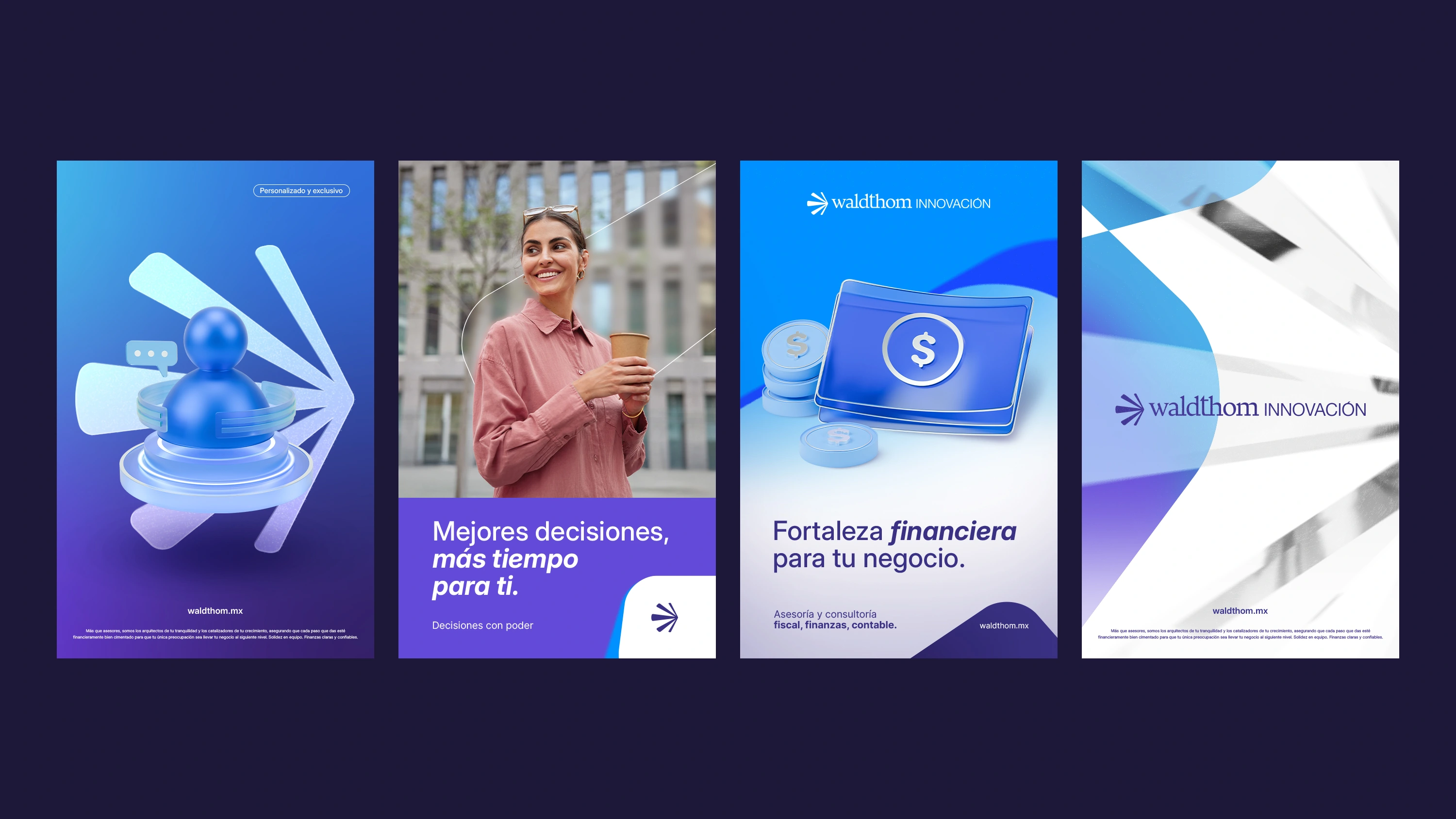 Creamos la identidad visual de Waldthom Innovación, una firma de asesoría fiscal, financiera y contable con enfoque tecnológico, ágil y orientado a ofrecer soluciones integrales para cada uno de sus clientes.
