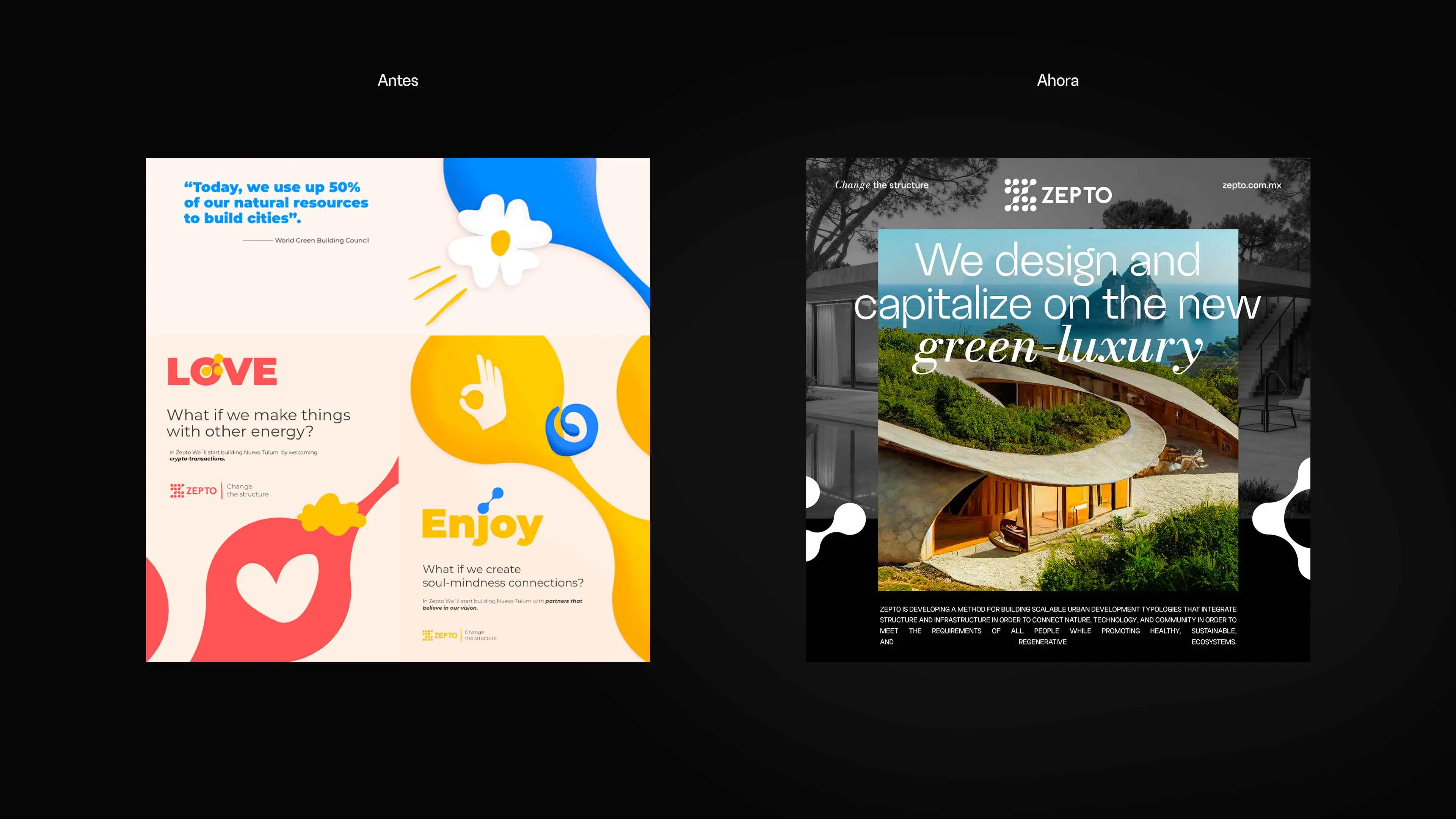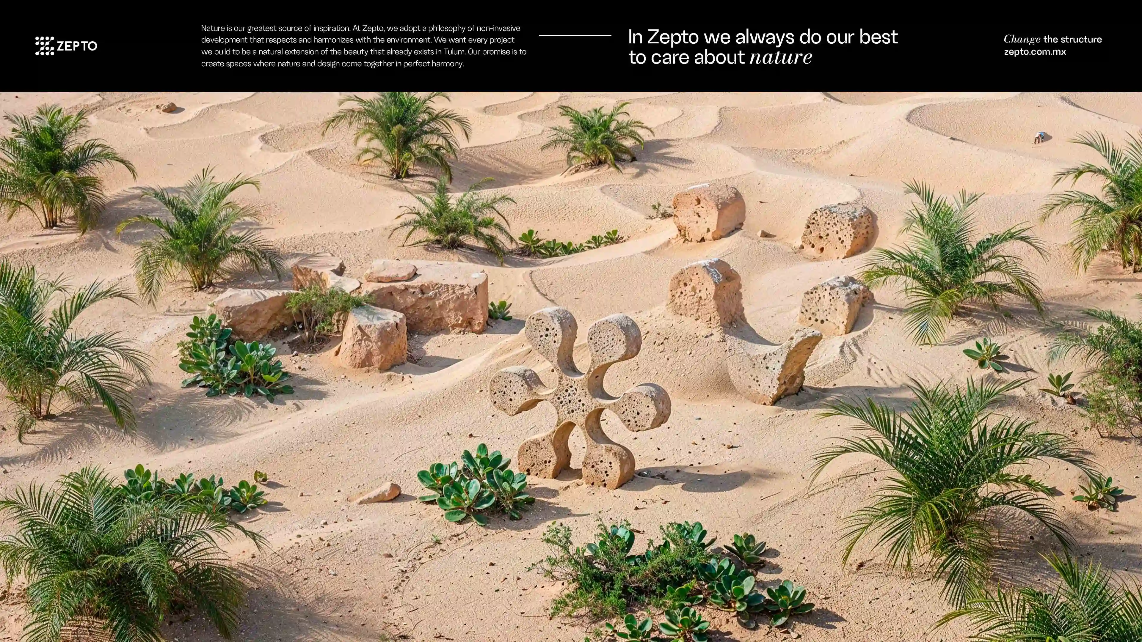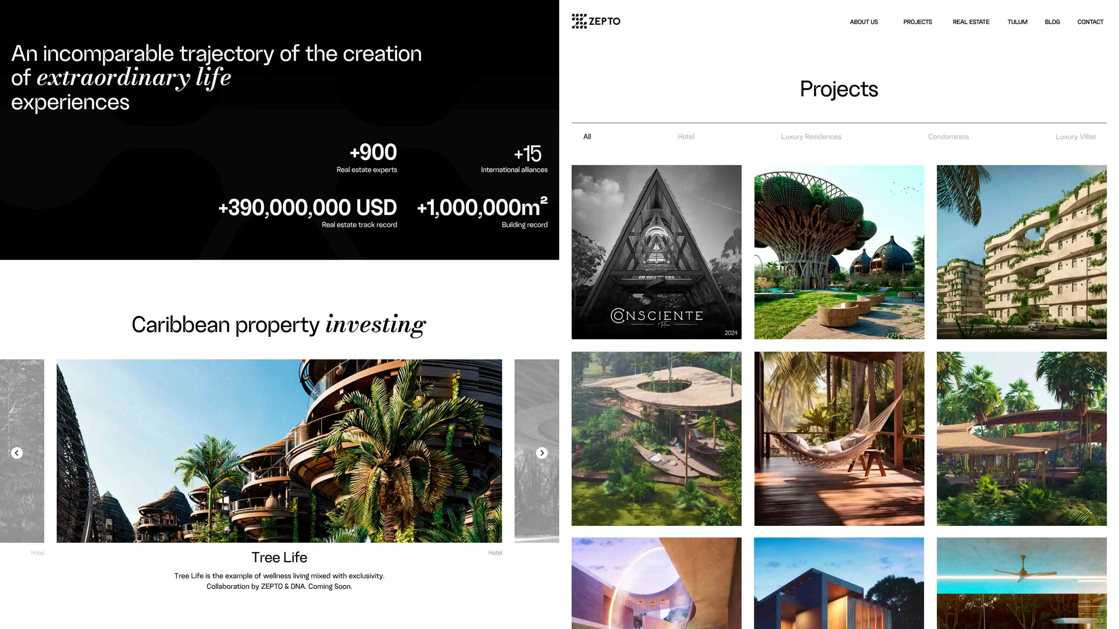 Zepto redefine el lujo verde en Tulum a través de desarrollos inmobiliarios que fusionan naturaleza y arquitectura biomimética. Su nueva plataforma visual transmite exclusividad, disrupción y un toque humano que comunica con claridad su propuesta de valor.